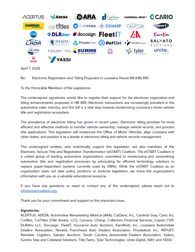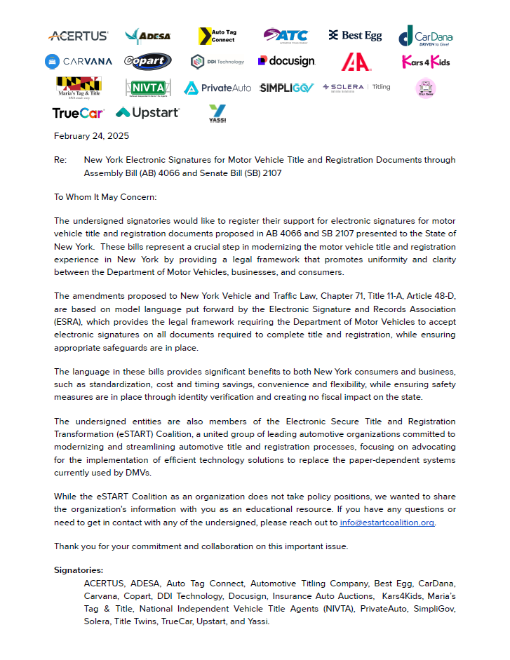 While the eSTART Coalition, as an organization, does not take policy positions, the coalition facilitates efforts of its members. The efforts and campaigns reflected below exemplify how the coalition drives awareness and promotes progress. Members can select, on a case-by-case basis, which efforts to sign onto or support.
